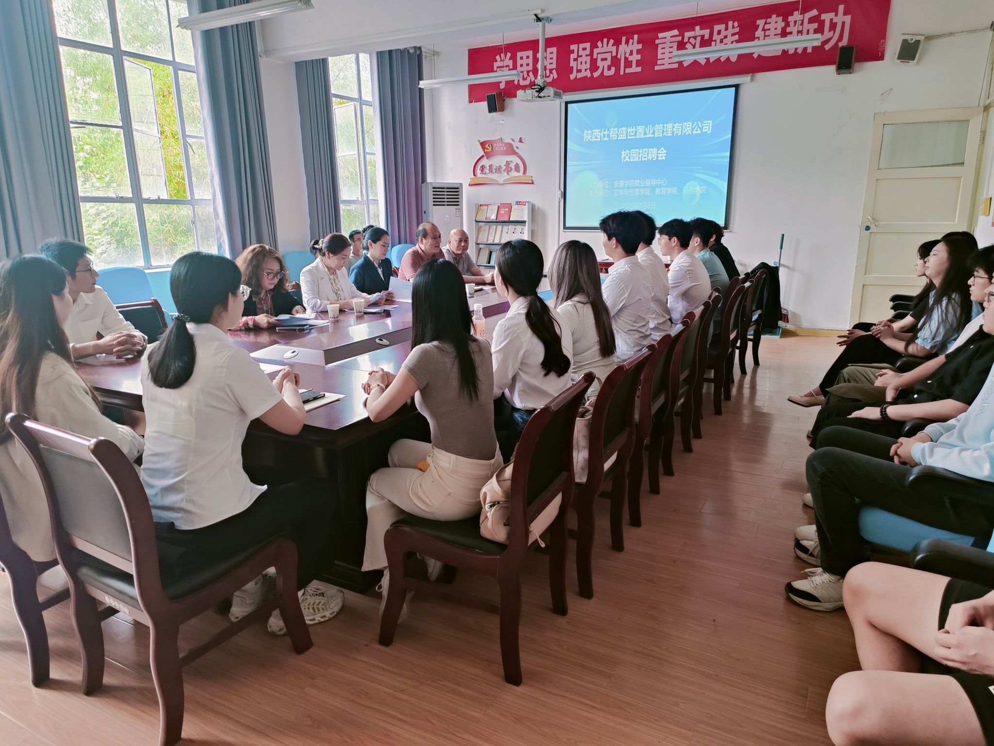 陕西仕帮盛世置业管理有限公司人力资源部总监杨萍等三人向应聘学生介绍了公司基本情况以及本次招聘的岗位情况,解答同学们关于薪资待遇、未来职业发展等问题。接着与应聘学生一一见面,进行单独面试。