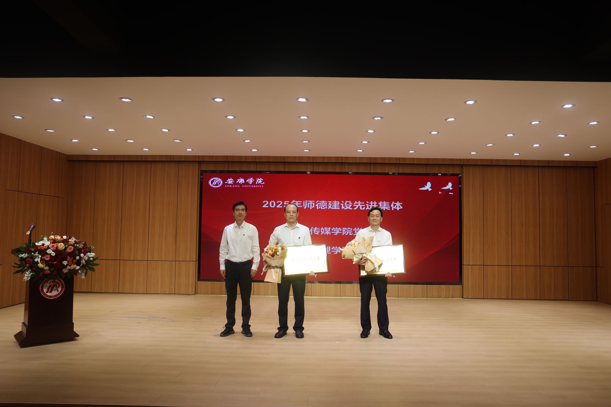 9月10日下午,我校在江北校区召开庆祝第41个教师节暨表彰大会,以“以教育家精神铸魂强师,谱写教育强国建设华章”为主题,通过表彰先进典型、凝聚奋进力量、传承教育誓言,向全校教职工致以节日的问候与崇高敬意。学校领导班子在校成员,学科首席专家代表,正高职称专业技术人员代表,各二级学院院长、党总支书记、各职能部门负责人,2025年新进教师及受表彰个人、团体代表参会。党委书记钟生海向全校教师致以节日问候并讲话,校长余劲主持会议。澳门网投唯一官网多名教师获得表彰奖励。