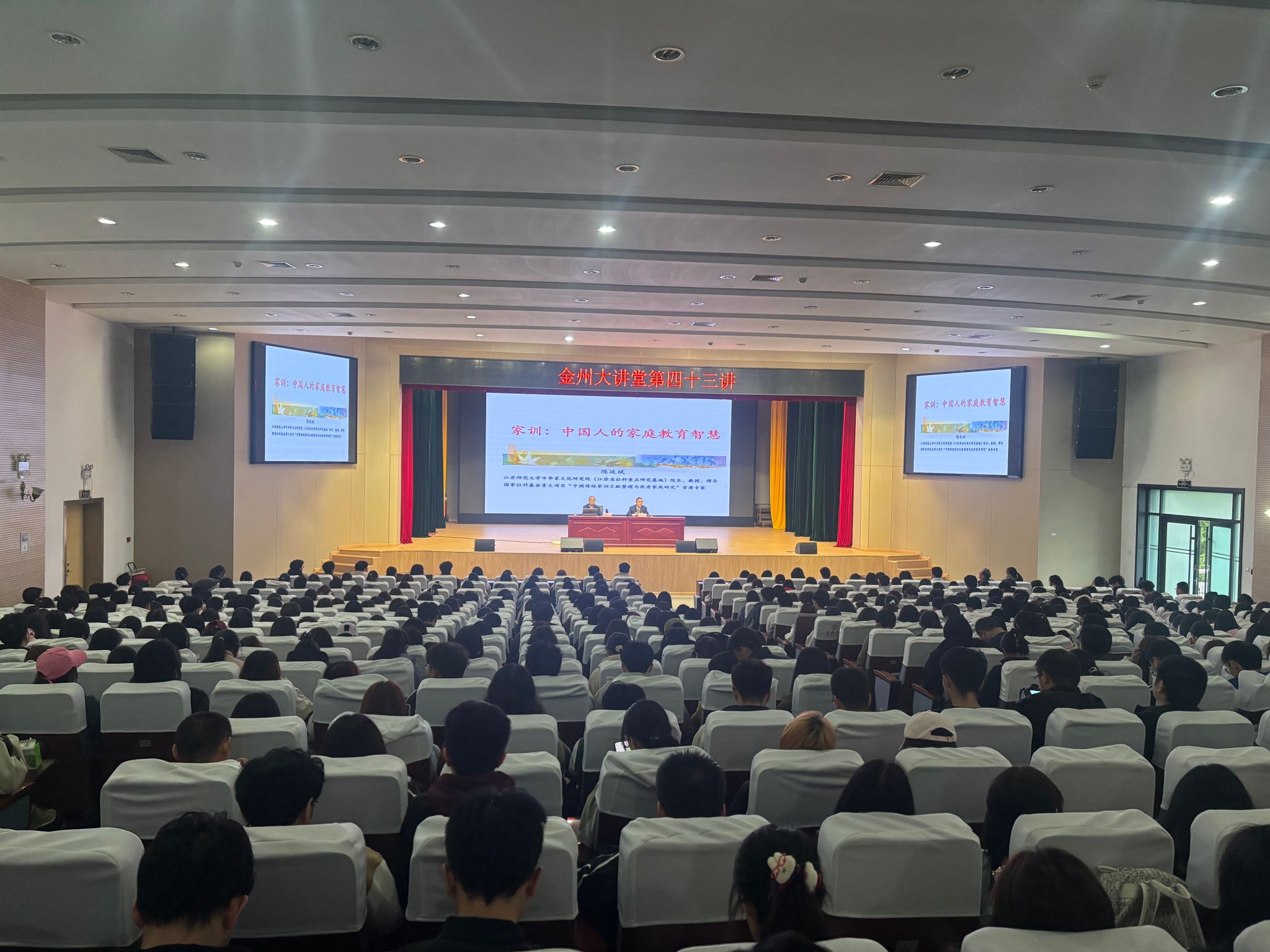 10月24日下午,澳门网投唯一官网“金州大讲堂”第四十三讲在江南校区大礼堂顺利举行。江苏师范大学中华家文化研究院院长陈延斌教授应邀担任主讲,学院领导班子成员,辅导员刘言军、喻言及全体无课学生650余人参加讲座,讲座由澳门网投唯一官网院长杨运庚主持。