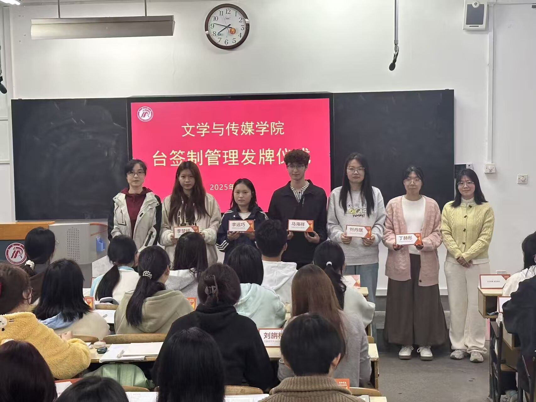 台签制将覆盖全院2025级所有班级,在固定教室或专业课堂上统一摆放使用。学院后续将结合台签制管理,系统性开展学风建设标兵评选、三笔字优秀作品展出等系列活动,不断延伸和巩固其管理成效,确保台签制发挥实效,成为学风建设的有力抓手。