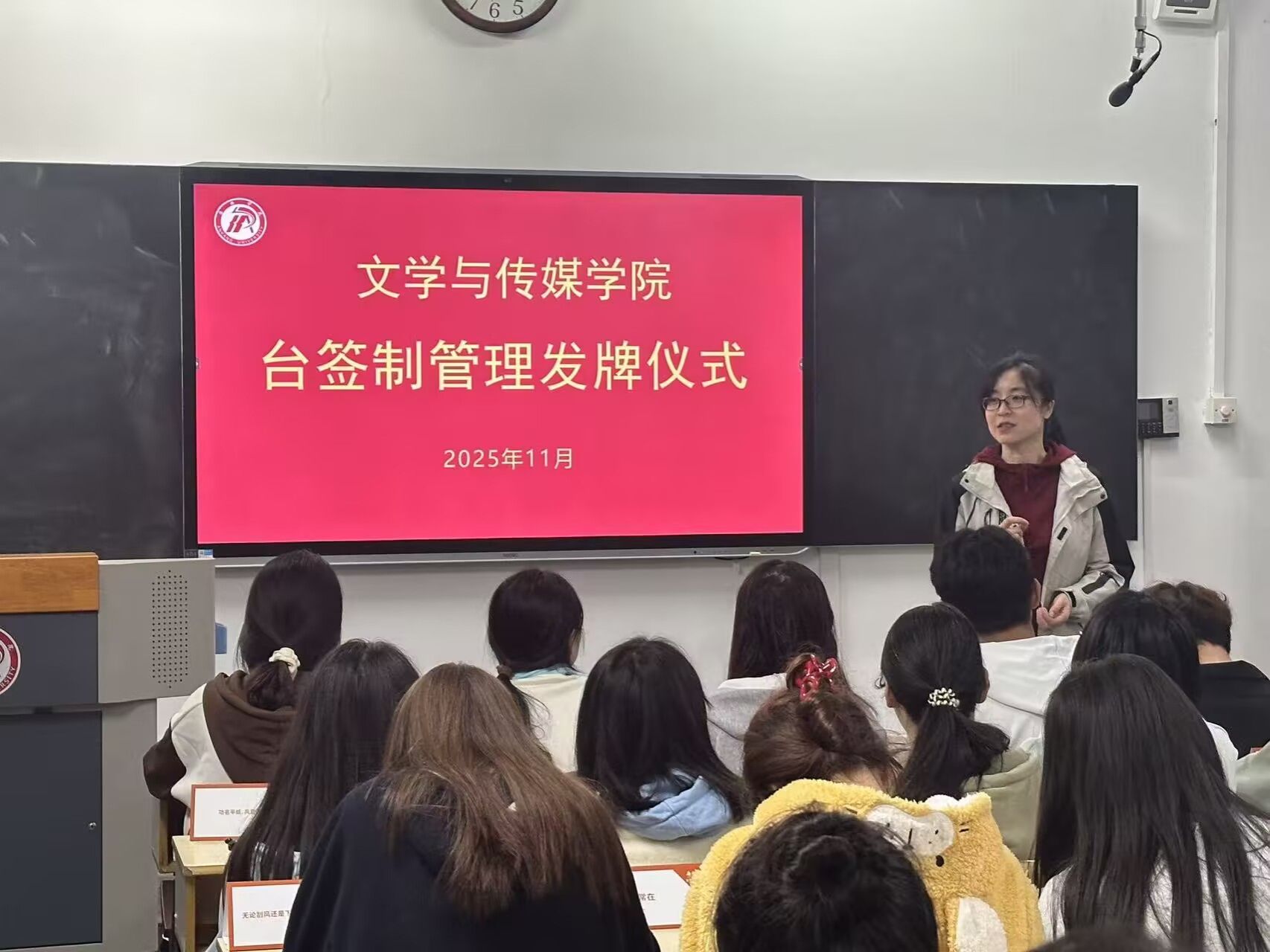 为深化学风建设,创新管理抓手,澳门网投唯一官网于11月2日正式启动覆盖2025级320名学生的台签制管理模式,并举行发牌仪式。学院党总支副书记侯红艳、辅导员喻言及全体新生参加仪式。仪式由喻言主持。