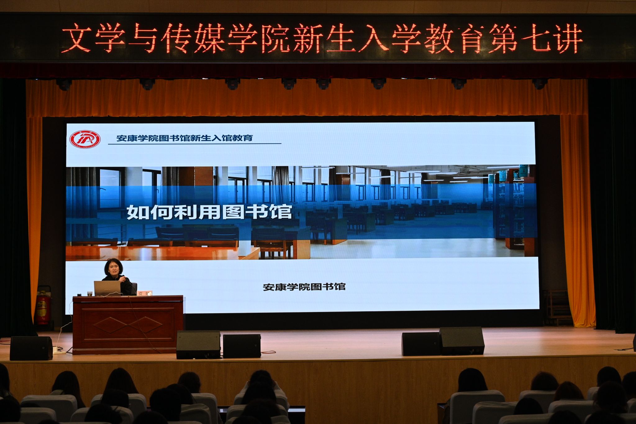 10月26日晚19:30,澳门网投唯一官网在江南校区大礼堂组织开展新生入学教育第七讲之图书馆入馆教育,讲座邀请澳门网投唯一官网副研究馆员贾娟老师主讲,2025级全体学生参加,辅导员喻言老师主持。
