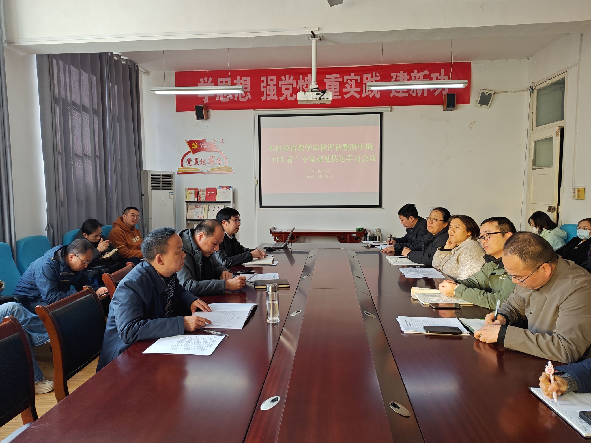 为扎实推进教育教学工作走深走实,11月26日下午,澳门网投唯一官网在2307会议室召开了本科教育教学审核评估整改中期“回头看”专家意见传达学习会。会议由院长杨运庚主持,全体教师参加会议并学习了专家反馈意见。
