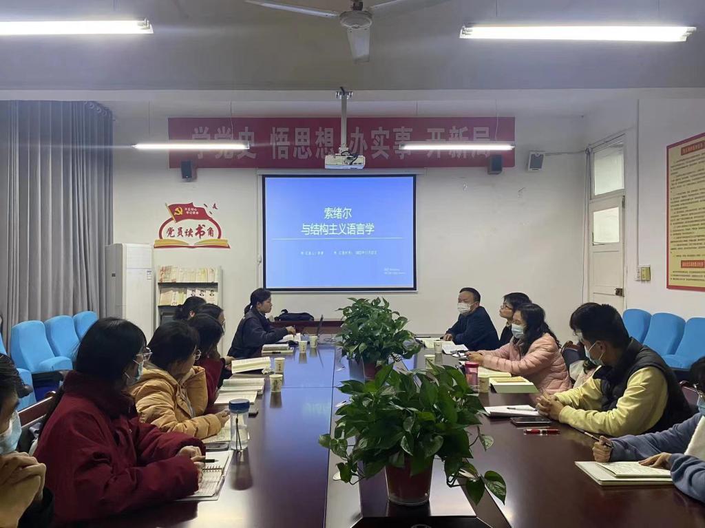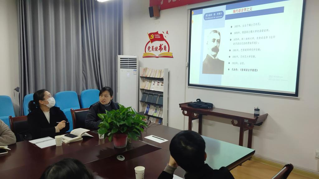 11月22日晚7点15分,澳门网投唯一官网语言学学科组在2307会议室成功举办了第六届“学术沙龙”活动周第二场沙龙活动。本场沙龙由副院长李婷主讲,主题为“索绪尔与结构主义语言学”。院长杨运庚,语言学学科组教师赵桃、周海霞、郭洪丹、盘珊君、曹璇璇和部分学生参加了活动和研讨。