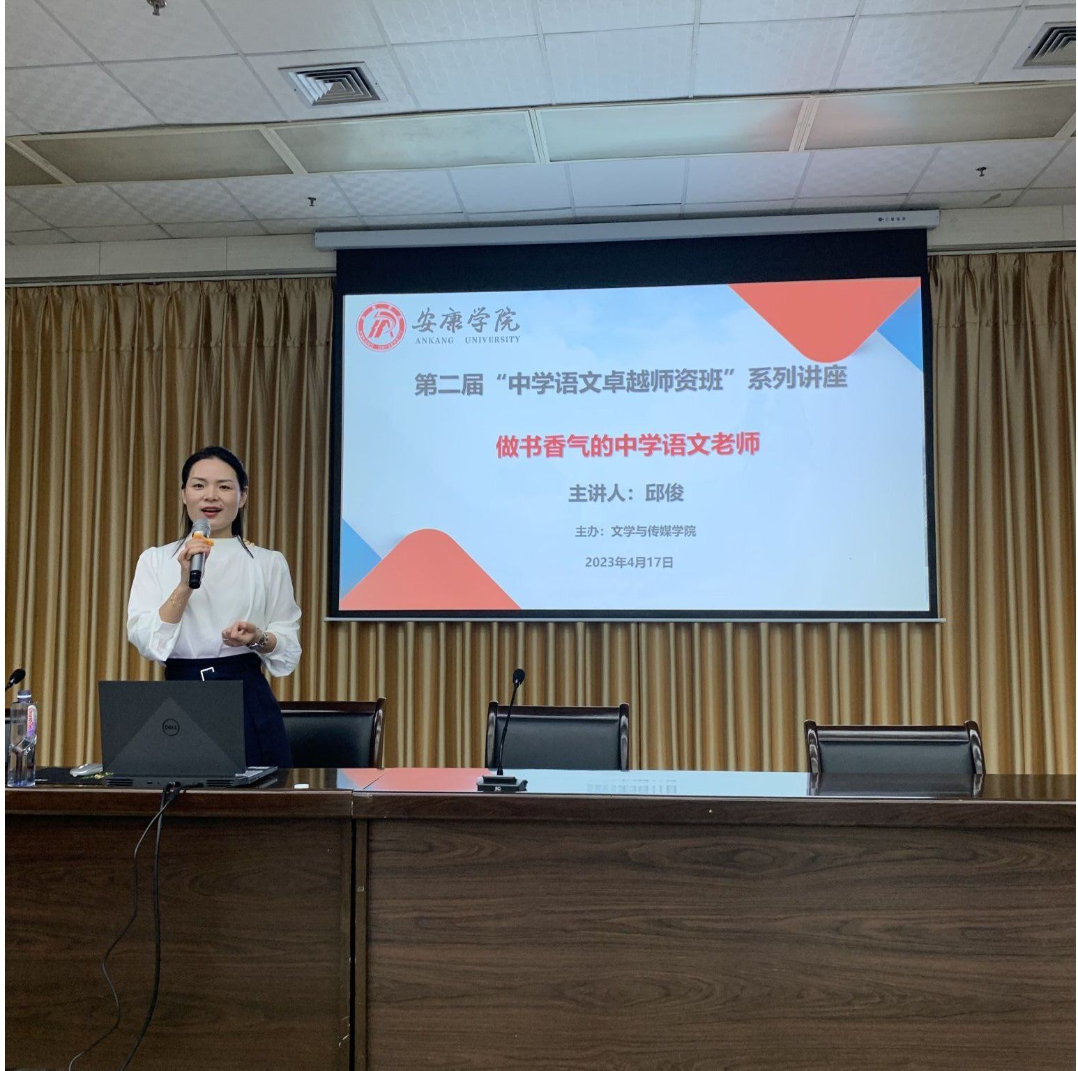 2023年4月17日下午七点半,陕西省教学名师、安康市教研室专家邱俊老师应邀为澳门网投第二届“中学语文卓越师资班”系列讲座做了题为“做书香气的中学语文老师”的首场讲座。讲座由澳门网投唯一官网副院长朱云主持,班主任张格瑄和“中学语文卓越师资班”的135名同学聆听了本场讲座。