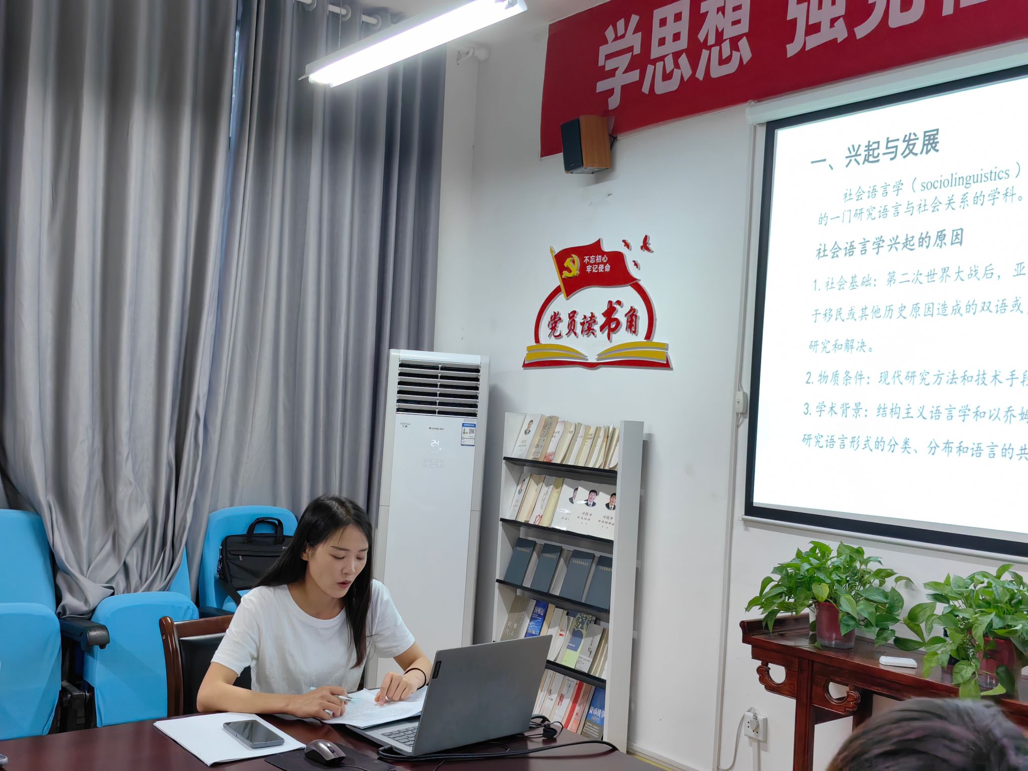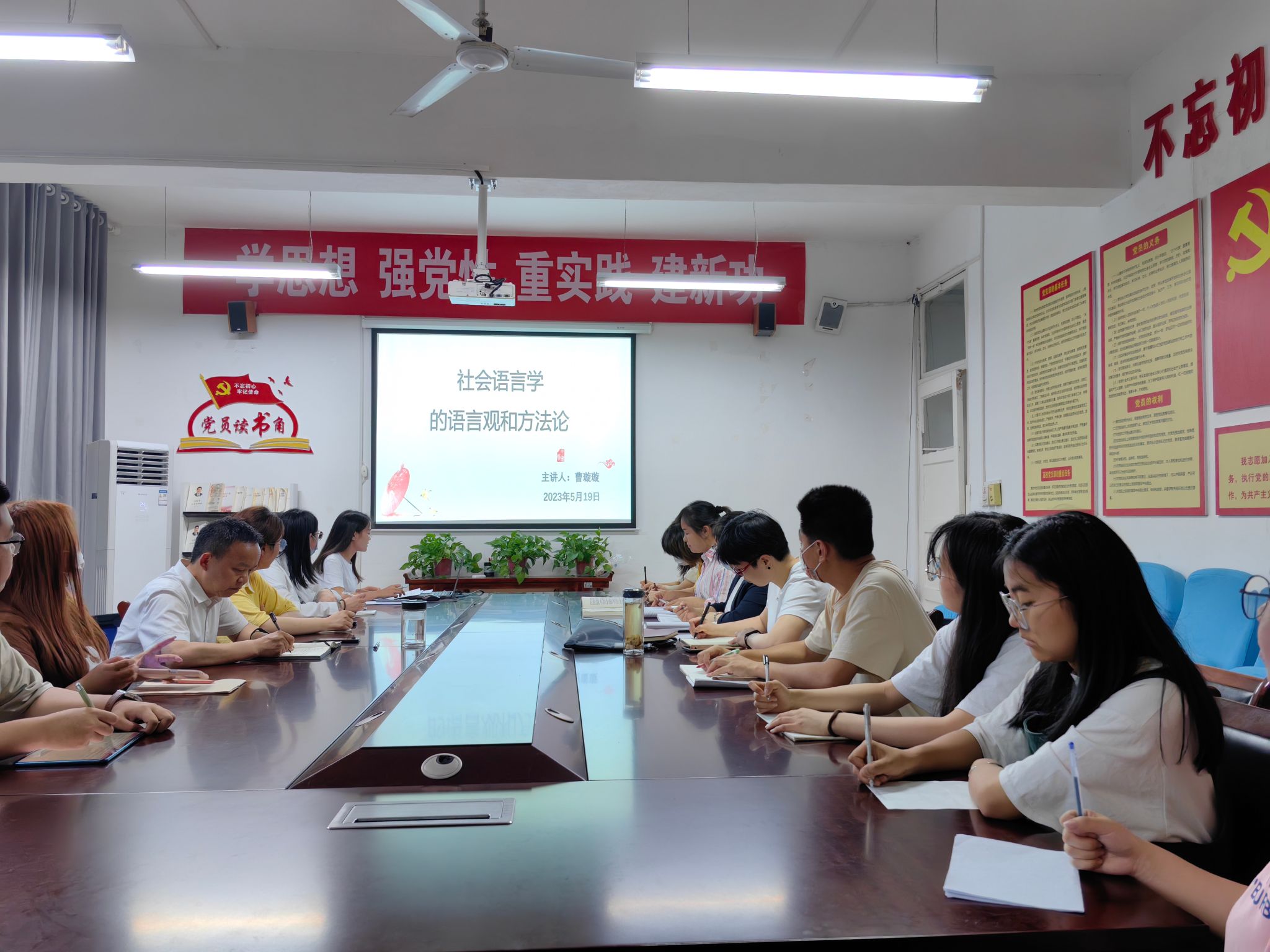 5月19日晚7点30分,澳门网投唯一官网语言学学科组在2307会议室成功举行了第七届“学术沙龙”活动周第五场沙龙活动。本场活动由青年教师曹璇璇老师主讲,主题为“社会语言学的语言观和方法论”。活动由院长杨运庚教授主持,副院长李婷及语言学学科组教师周海霞、郭洪丹和部分学生参加了活动和研讨。