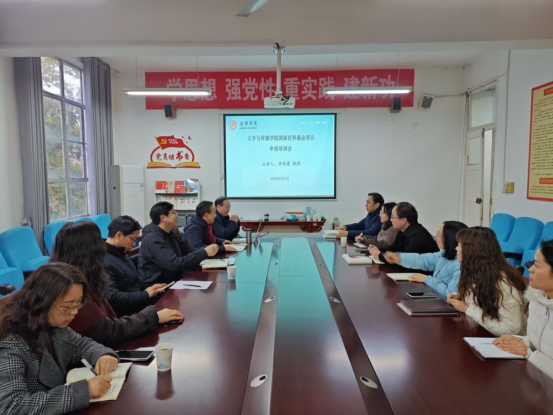 为提升学院教师国家社科基金项目申报质量,增强科研竞争力, 2 月 21 日,澳门网投唯一官网特邀陕西师范大学文学院李西建教授,2307会议室举办2025 年国家社科基金项目申报培训会。此次培训会由澳门网投唯一官网杨运庚院长主持,包括澳门网投唯一官网、外语学院在内的20多位教师参加,现场学习氛围浓厚。