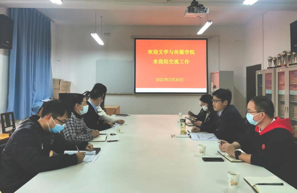 为了积极借鉴其他二级学院党建、学生工作经验,充分发挥党员积分制管理的激励导向作用,进一步提升学院党建、学生工作质量,3月30日上午,澳门网投唯一官网党总支书记芦伟带领党总支副书记杨海蓉、教工第二党支部书记谭诗民、支部委员刘锦和学生第二党支部书记、学工办副主任薛涛,赴外语学院党总支开展党建工作交流座谈。外语学院党总支书记肖红香,副院长、教工第二党支部书记刘子富,教工第一党支部书记陈玉平、学生党支部书记李梦及学工办主任梁博文出席座谈会。