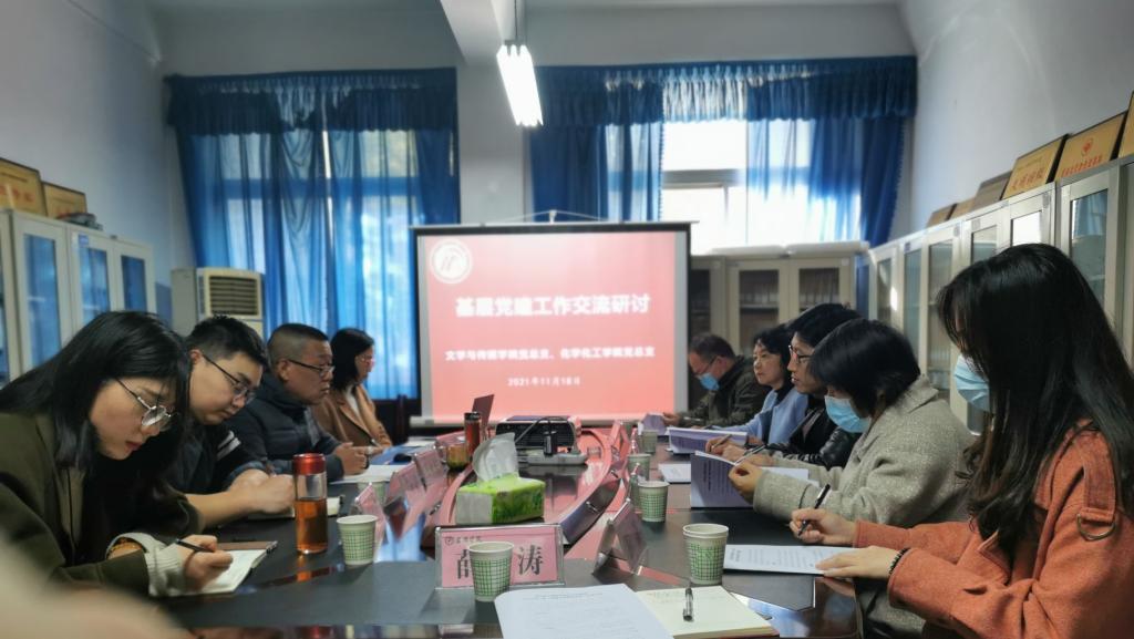 为了深入贯彻落实学校党委新时代党建工作要求,结合党史学习教育安排,扎实推进澳门网投唯一官网党建“双创”工作,1118日下午,澳门网投唯一官网党总支书记芦伟、副书记杨海蓉、教工党支部书记韩文霞、谭诗民、学生党支部书记彭潇、薛涛一行前往化学化工学院党总支进行党建“双创”工作交流学习。化学化工学院党总支书记王永东、学生党支部书记王瑜、组织委员许珂瑶、宣传委员于正豪出席了交流座谈会。双方就做好新时代党建“双创”工作进行了深入的交流。