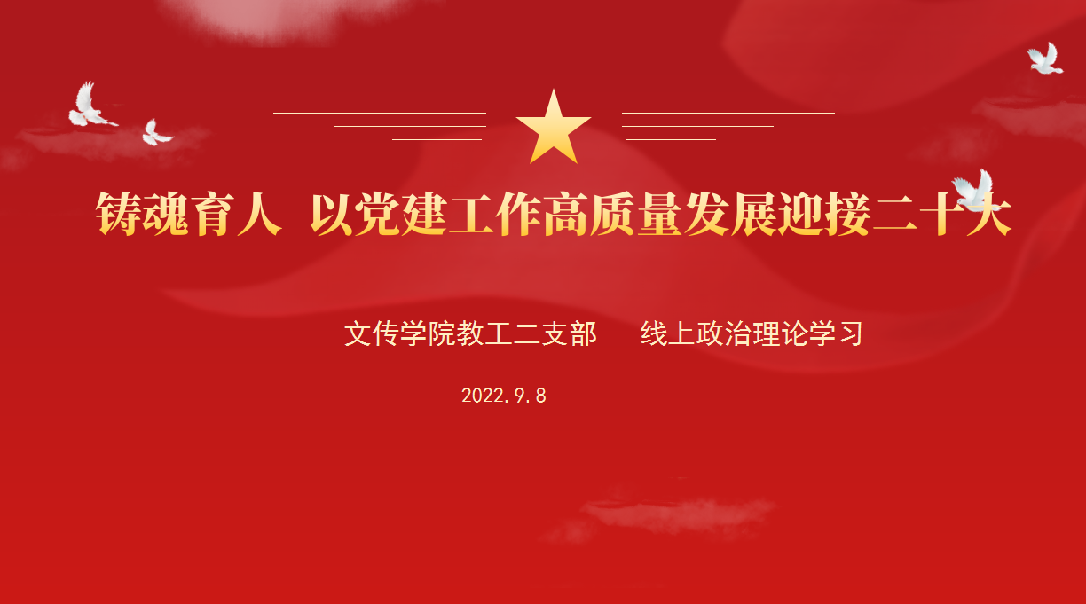9月7日下午,澳门网投唯一官网教工第二党支部在线上召开“铸魂育人,以党建工作高质量发展迎接二十大”理论学习会。党支部全体党员参加会议。会议由党支部书记邸玲主持。