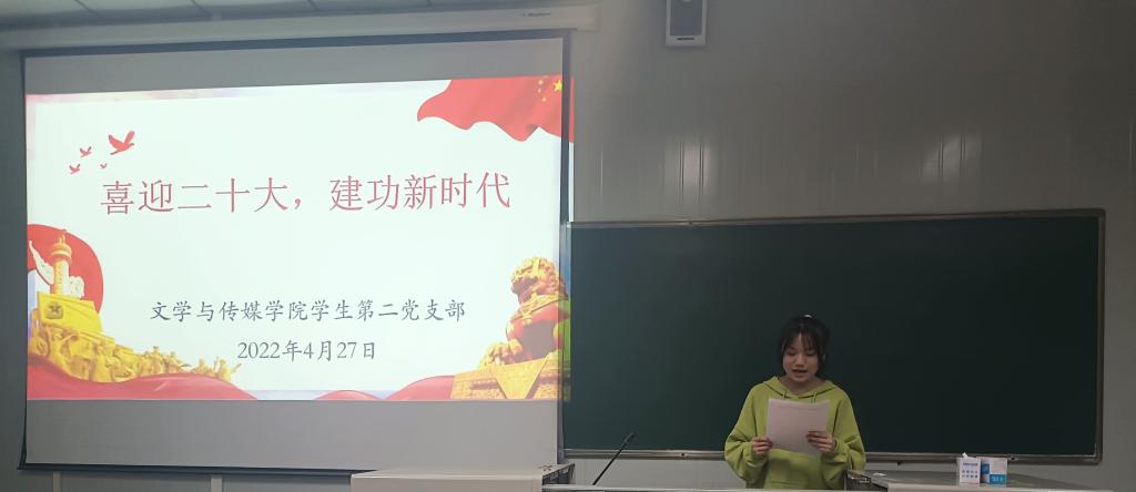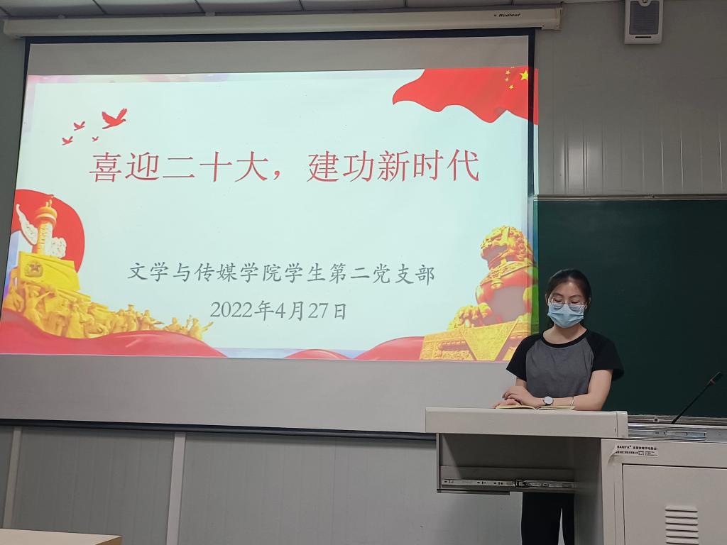 427日下午,澳门网投唯一官网学生第二党支部开展“喜迎二十大 建功新时代”主题党日活动,支部全体党员、发展对象和积极分子参加了此次主题党日活动。本次主题党日活动由支部学生党员李一欣主持。
