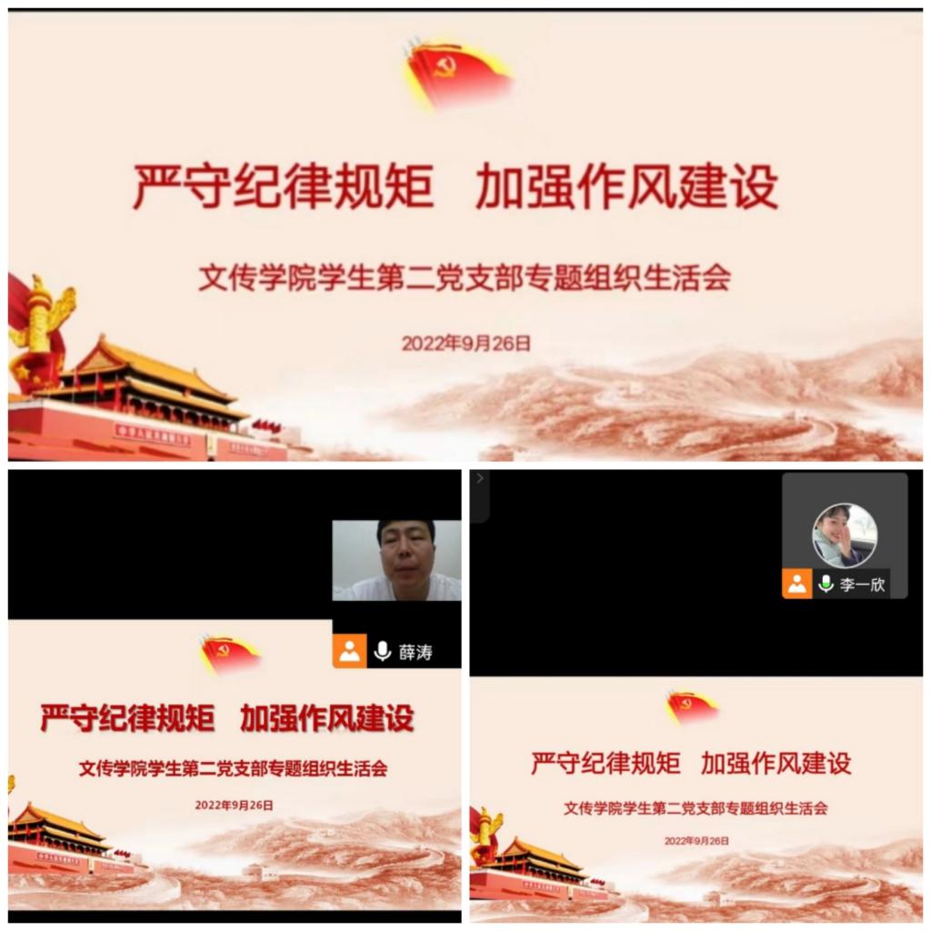 为认真贯彻落实习近平总书记关于加强纪律教育的重要论述,深入开展党性教育,加强作风建设,根据学校党委《关于在全校开展纪律教育学习宣传月活动的通知》要求,澳门网投唯一官网学生第二党支部于2022926日通过腾讯会议形式组织开展专题组织生活会,支部全体党员参加会议。会议由支部书记薛涛主持。