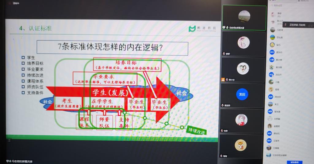 导航痕迹 首页 > 师范专业认证 > 活动新闻 > 正文 政策文件 活动新闻 师范生技能大赛 澳门网投唯一官网召开师范专业培养方案及课程大纲修订线上培训会 发布人:澳门网投唯一官网 发布日期:2022年04月06日 阅读次数: 4月1日晚,澳门网投唯一官网组织全体教师在腾讯会议平台参加了师范专业培养方案及课程大纲修订线上培训会,会议由教学副院长李婷主持,认证专家冯彬老师为主讲人。 冯老师首先讲了专业认证理念体系与内涵,主要包括认证工作来源与进展、认证的三大理念、以学生为中心的教学模式、认证标准、认证底线、面向产出的机制、认证申请工作流程和评审要点等内容。接着重点以现代汉语课程教学大纲为例,详细解读了课程目标与毕业要求的关系,课程考核评价方式及评价标准的编写细则。 此次会议通过生动案例的讲解,让学院教师对师范专业认证中培养方案和课程大纲的修订有了更深的认识,为接下来的具体修订工作提供了切实可行的指导。 撰稿/摄影/韩文霞 审核/李婷 发布/崔瑜