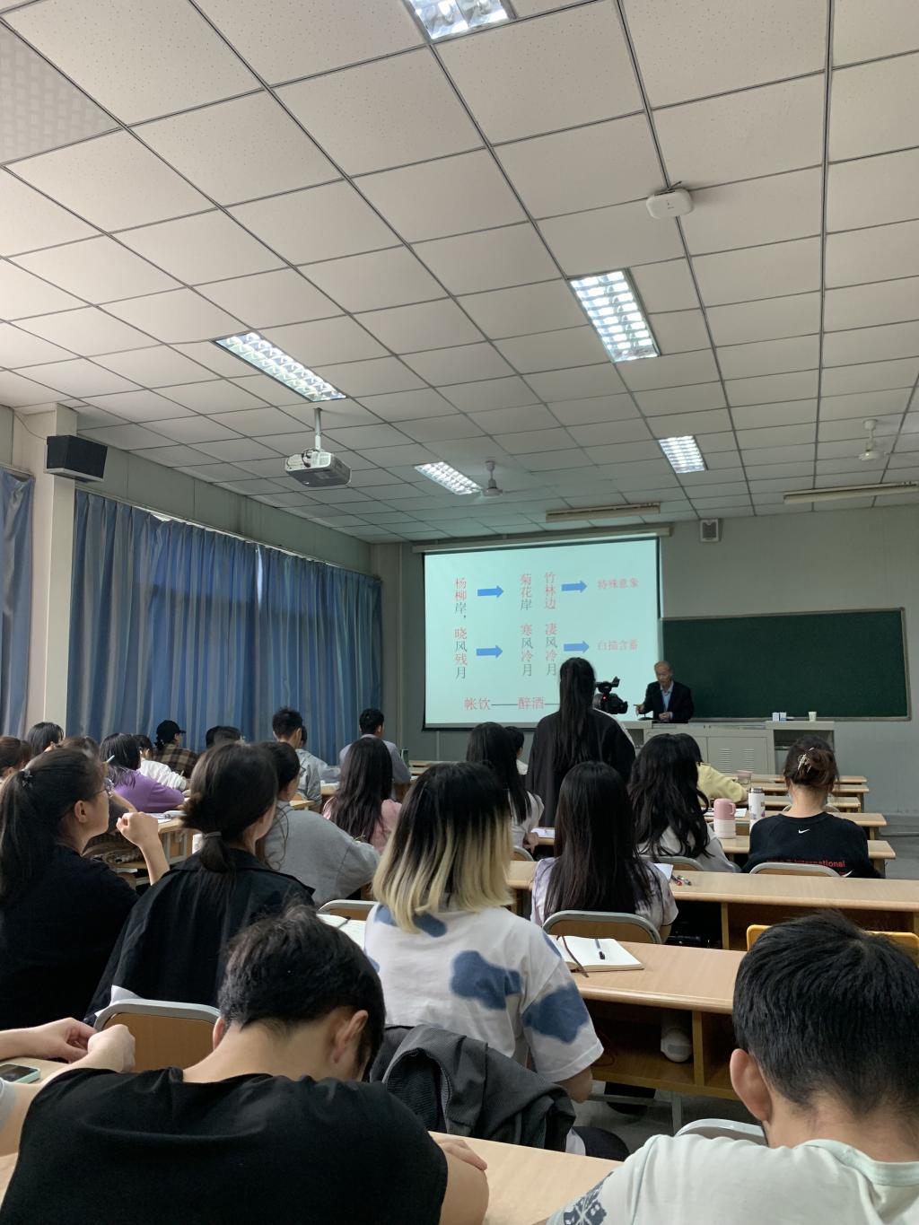 本场活动由三个环节组成。第一环节是微课教学展示。程老师以“杨柳岸,晓风残月”一句的赏析为例,带领师资班的同学们一起重新领略了高中时代古诗词课的魅力。第二环节,程时进老师做了题为《阅读古典诗歌的一般程序》的微讲座,程老师结合大量生动鲜明的课例给同学们传授了五个具体实用的方法:一是判明诗体,二是立足整体读懂诗句,三是入境悟境,四是知人论世,五是分析写法。活动第三环节是互动交流,师资班的同学们踊跃发言,向程老师提出了有关诗词教学的相关问题,程老师一一做了解答,与此同时,程老师还向同学们推荐了相关阅读书目。