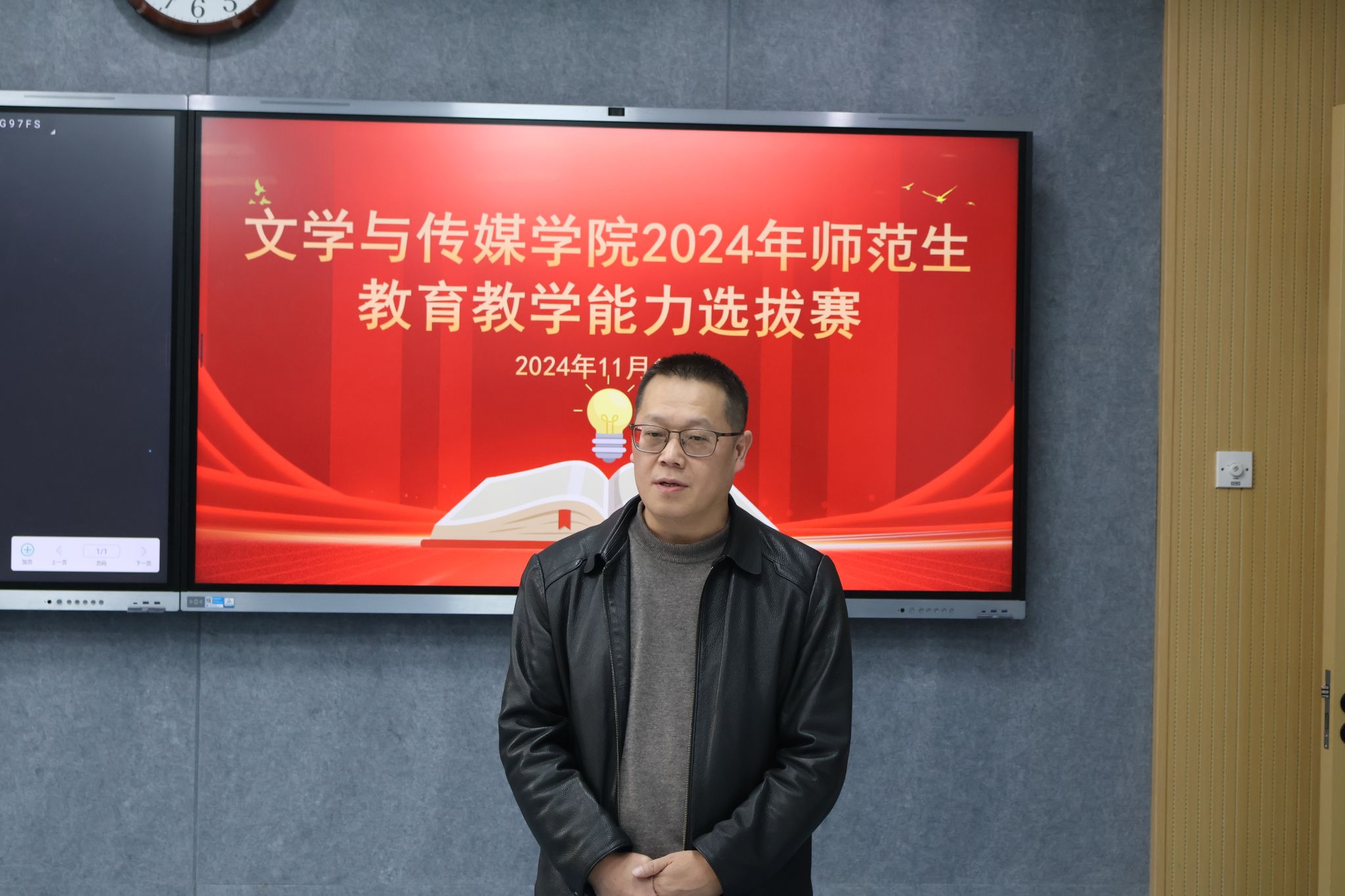 为做好陕西省2024年度师范生教育教学能力大赛准备工作提升汉语言文学专业学生的师范生技能,澳门网投唯一官网在初赛的基础上,于2024年11月10日在江南校区1205教室成功举办了师范生教育教学能力选拔赛学院决赛。决赛邀请了安康市汉滨初中副校长全东、汉滨区初级中学师训中心副主任张美玲、汉滨初中大桥路校区办公室主任柏虎峰担任评委,澳门网投唯一官网副院长朱云、系主任谭诗民、任课老师张格瑄和唐明珍参加了活动。